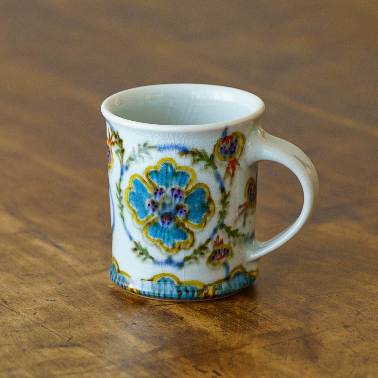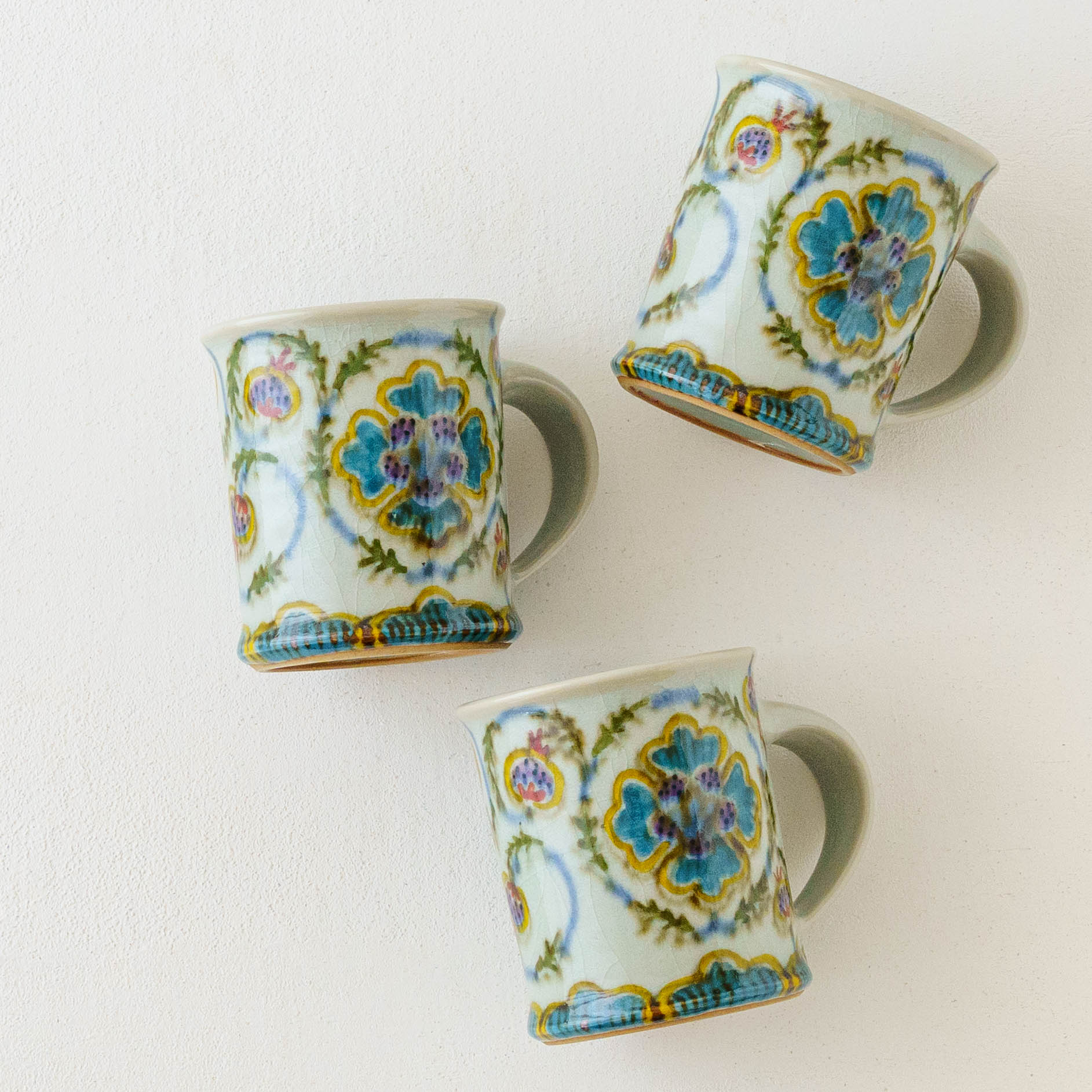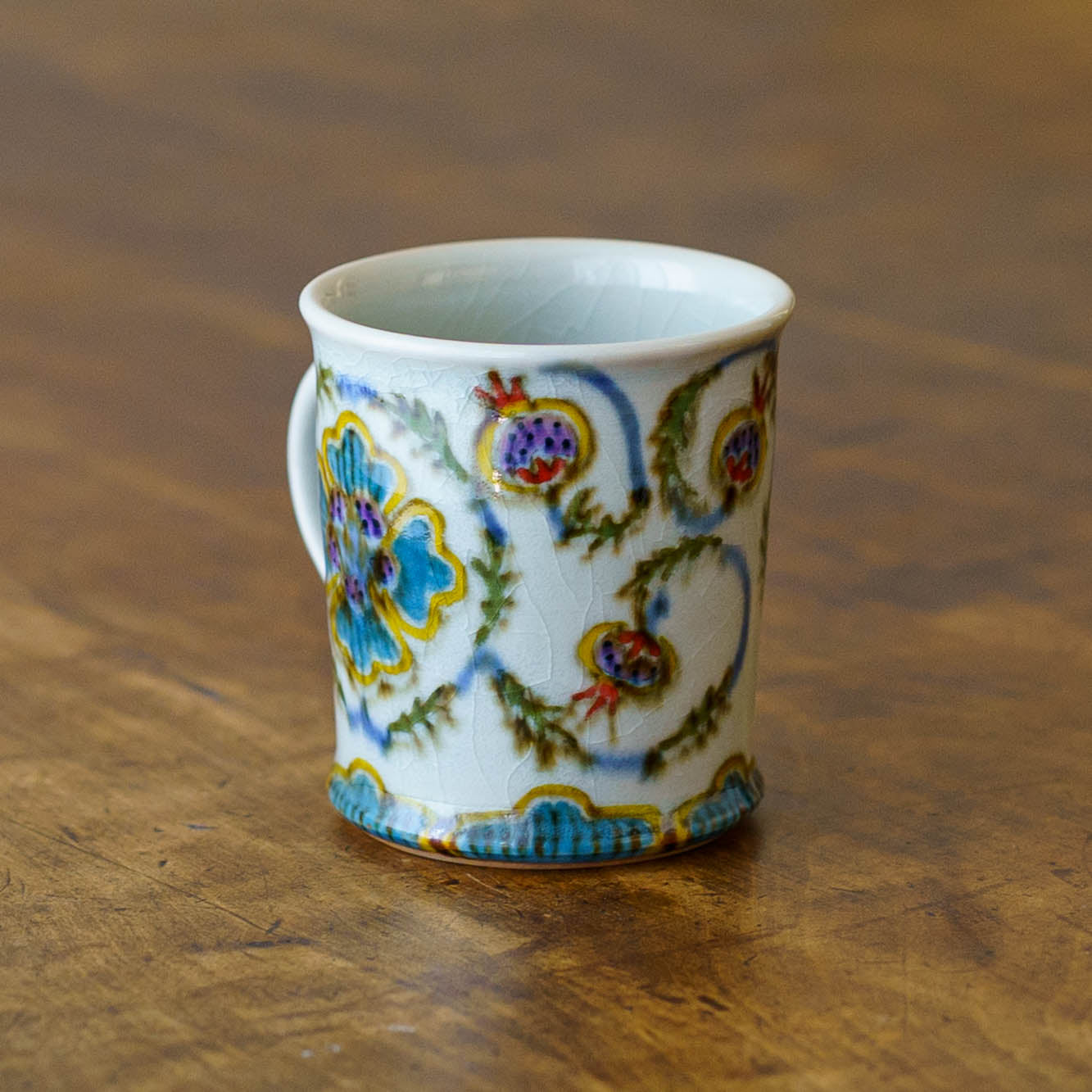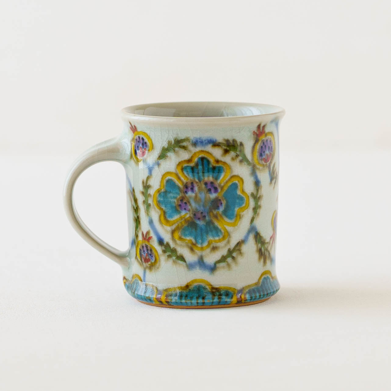 センス溢れるデザイン、絵柄や模様、多彩な色使いは、日本の古い紋様に加え、海外のテキスタイルやタイルなどからもインスパイアされているとのこと。古き良き砥部焼のスタイルと現代的なエッセンスがバランスよく融合され、オリジナリティー溢れる作品を生み出しています。