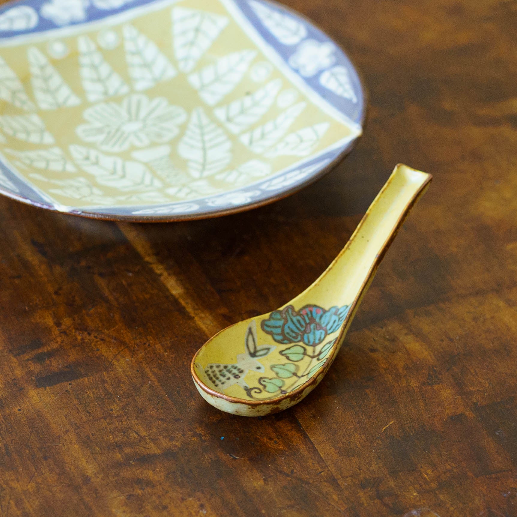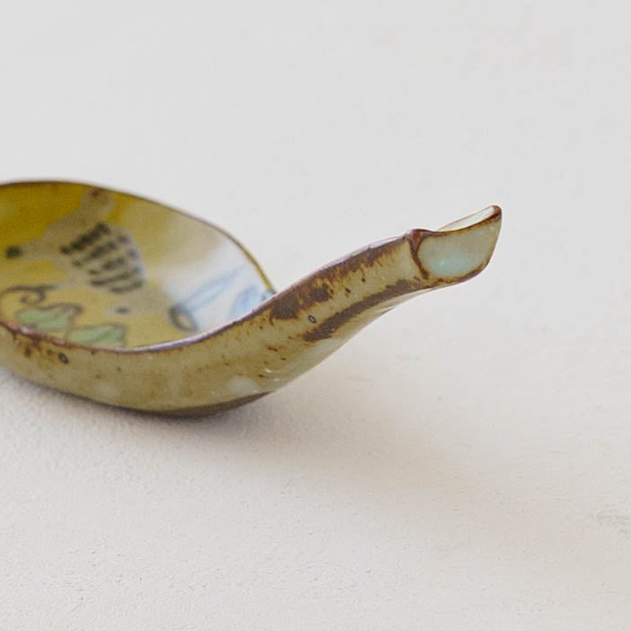 センス溢れるデザイン、絵柄や模様、多彩な色使いは、日本の古い紋様に加え、海外のテキスタイルやタイルなどからもインスパイアされているとのこと。古き良き砥部焼のスタイルと現代的なエッセンスがバランスよく融合され、オリジナリティー溢れる作品を生み出しています。