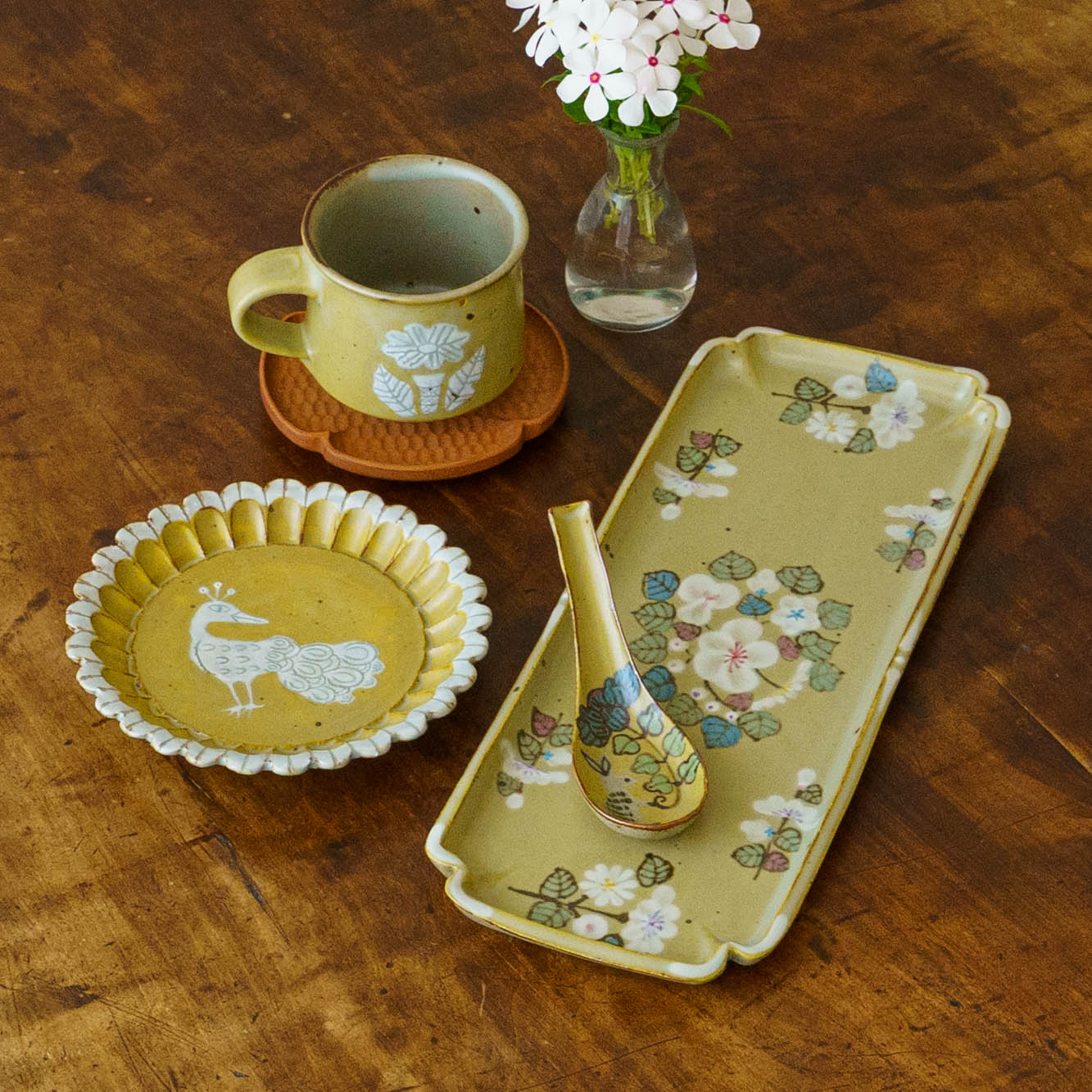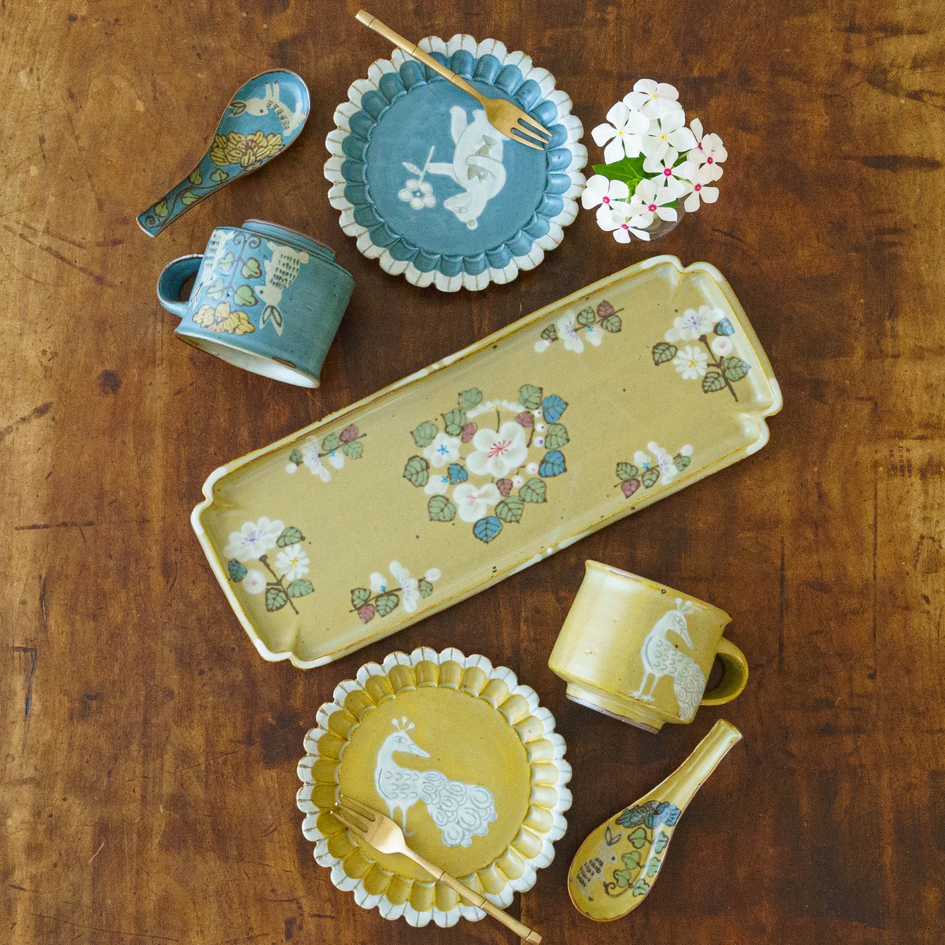 成型には主にろくろ、タタラ、型打ちの3種類の技法を用い、それぞれの特徴を活かしながら成型しています。手しごとならではのあたたかみと確かな技術が、ひとつひとつの器に息づいているようです。