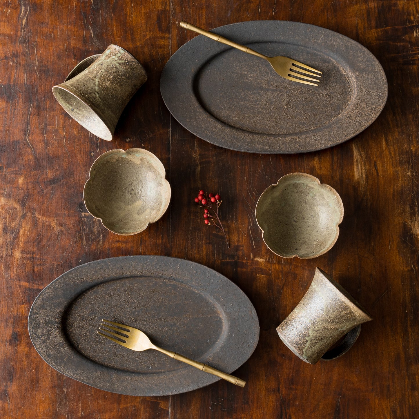 〇目止めは特に必要ありません 〇鉄釉のうつわは釉薬に金属が含まれているので、電子レンジのご使用はお避けください 〇薄作りのうつわなので、洗う時など他の食器や蛇口にあたらないようご注意ください |