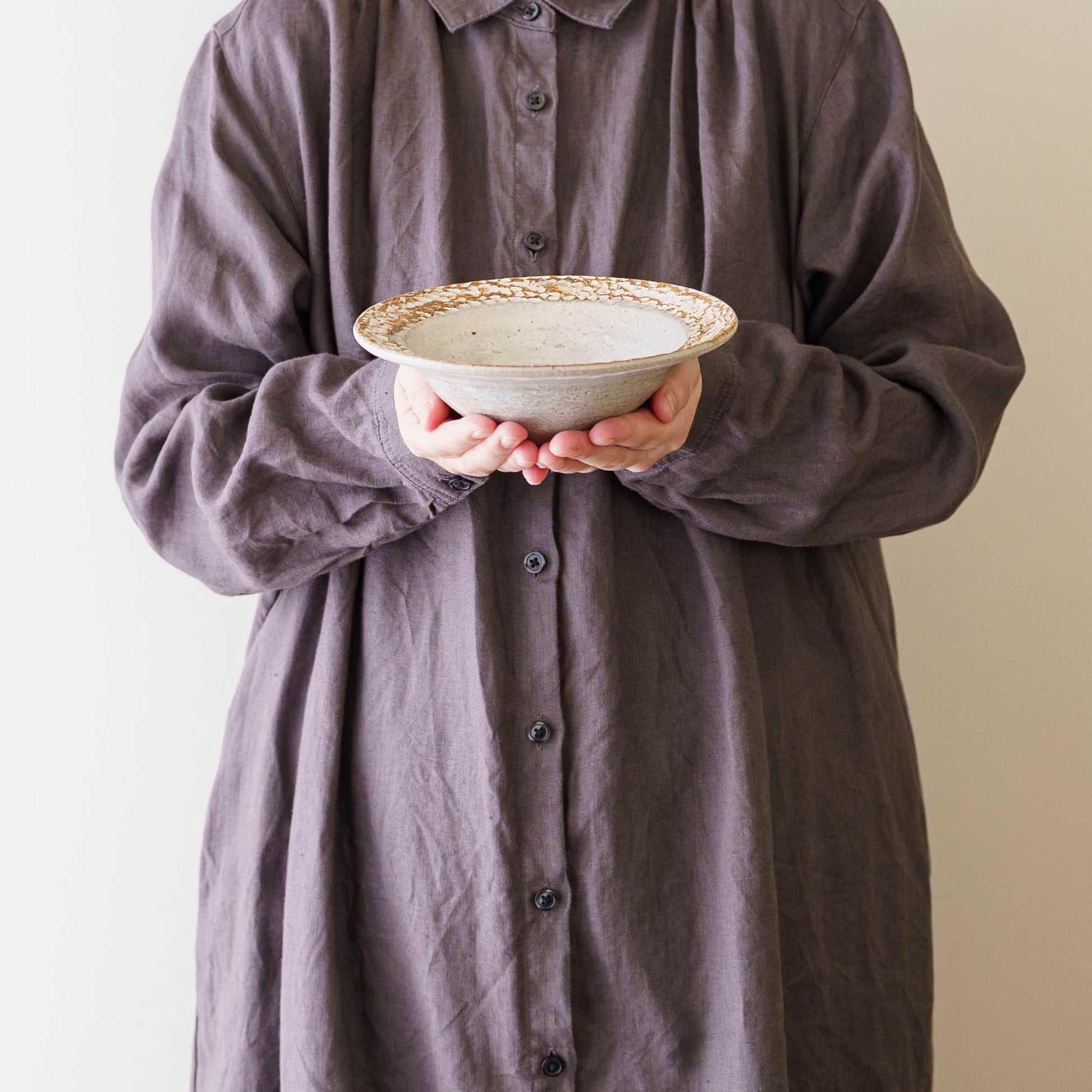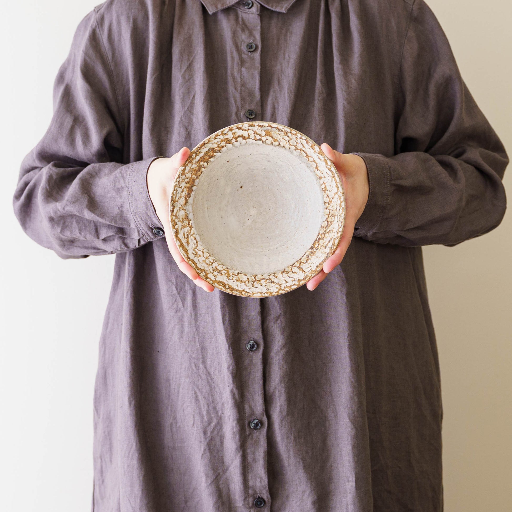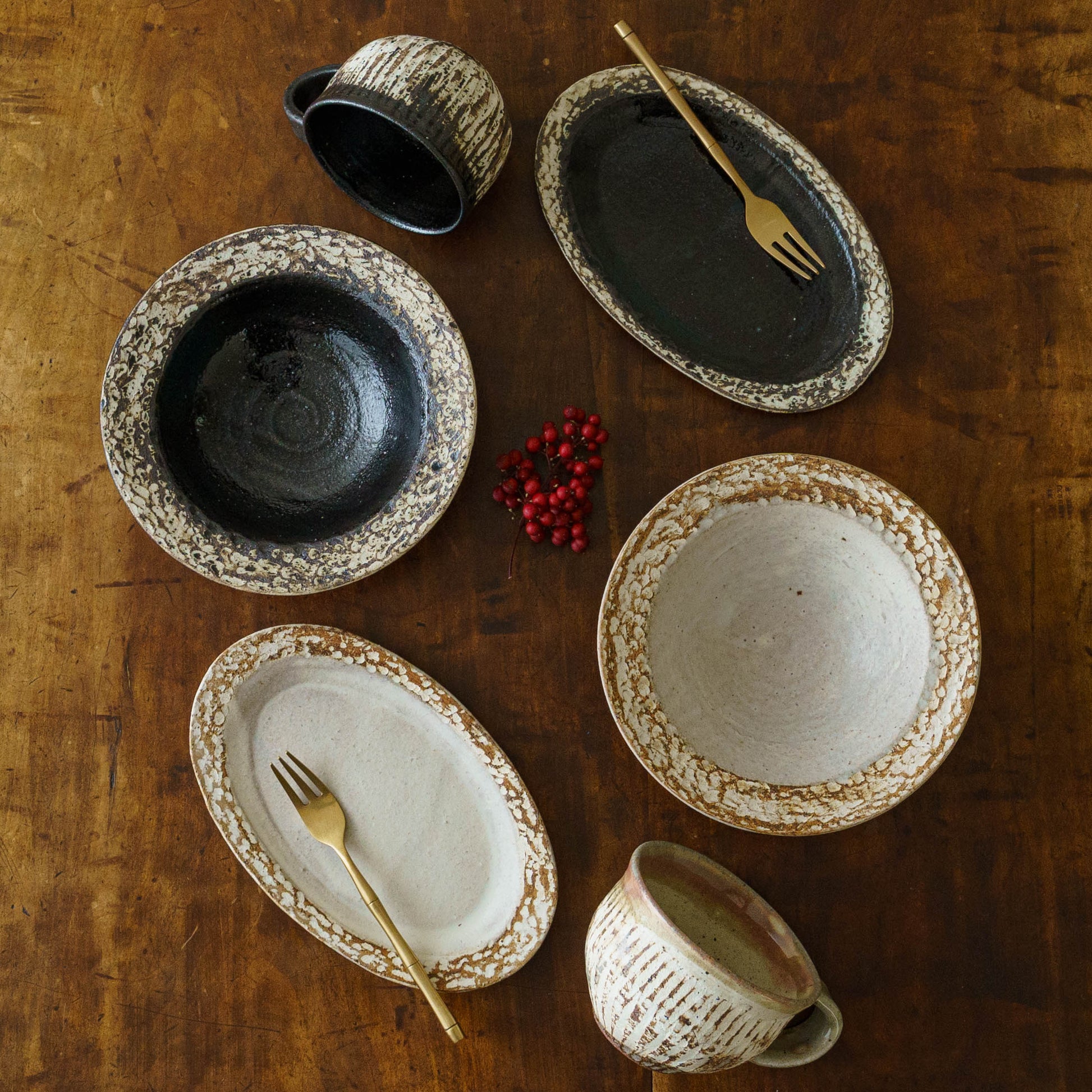 お料理を器の上にそっと盛りつけたとき、互いを最も響かせ、器とお料理がまるで自然の風景のような景色をみせてくれます。手に取った瞬間から、使い終えて棚に戻すその時まで、そっと寄り添ってくれるような使い心地です。どんな日常にも自然に馴染み、気付けばいつも選んでしまう。そんな安心感があります。