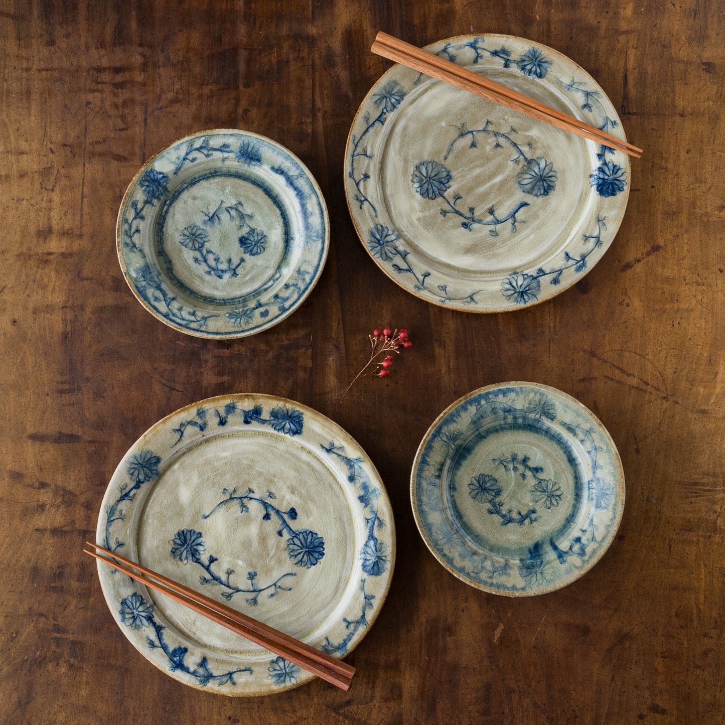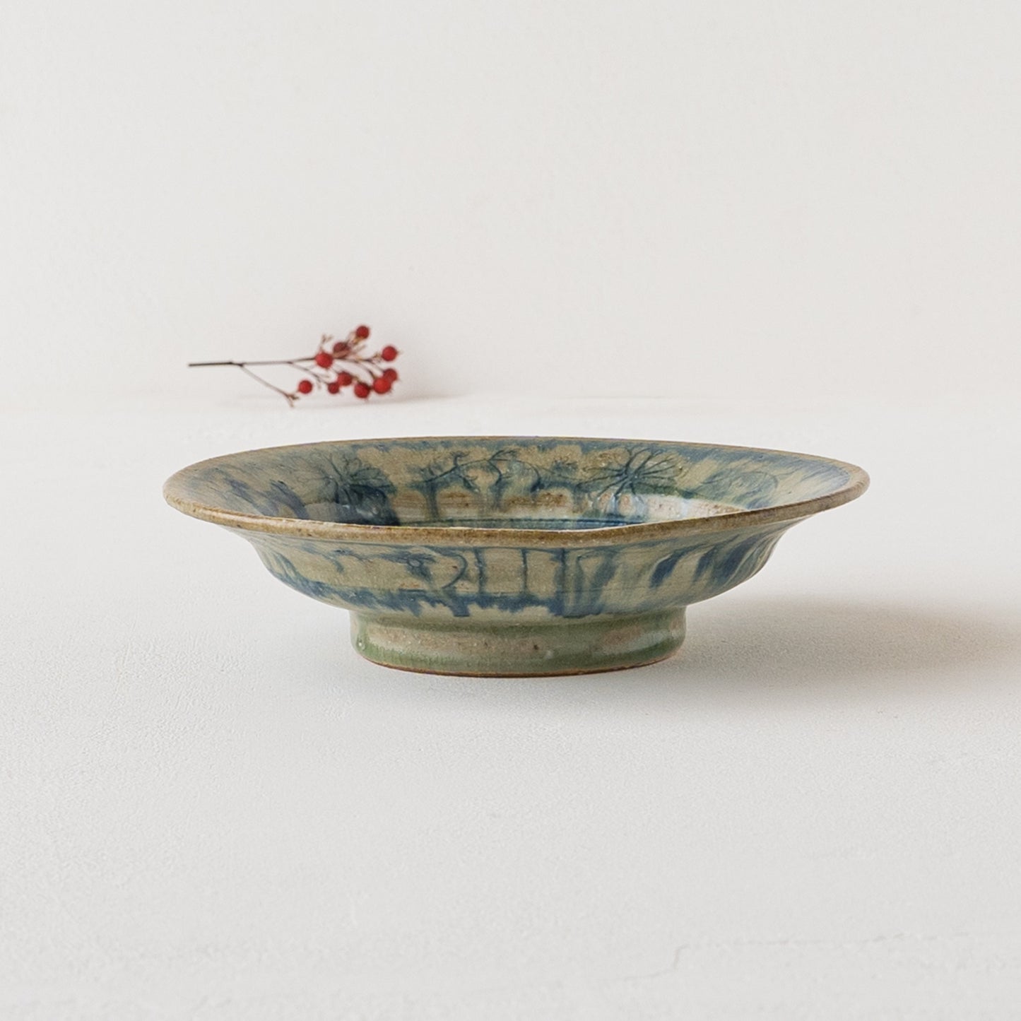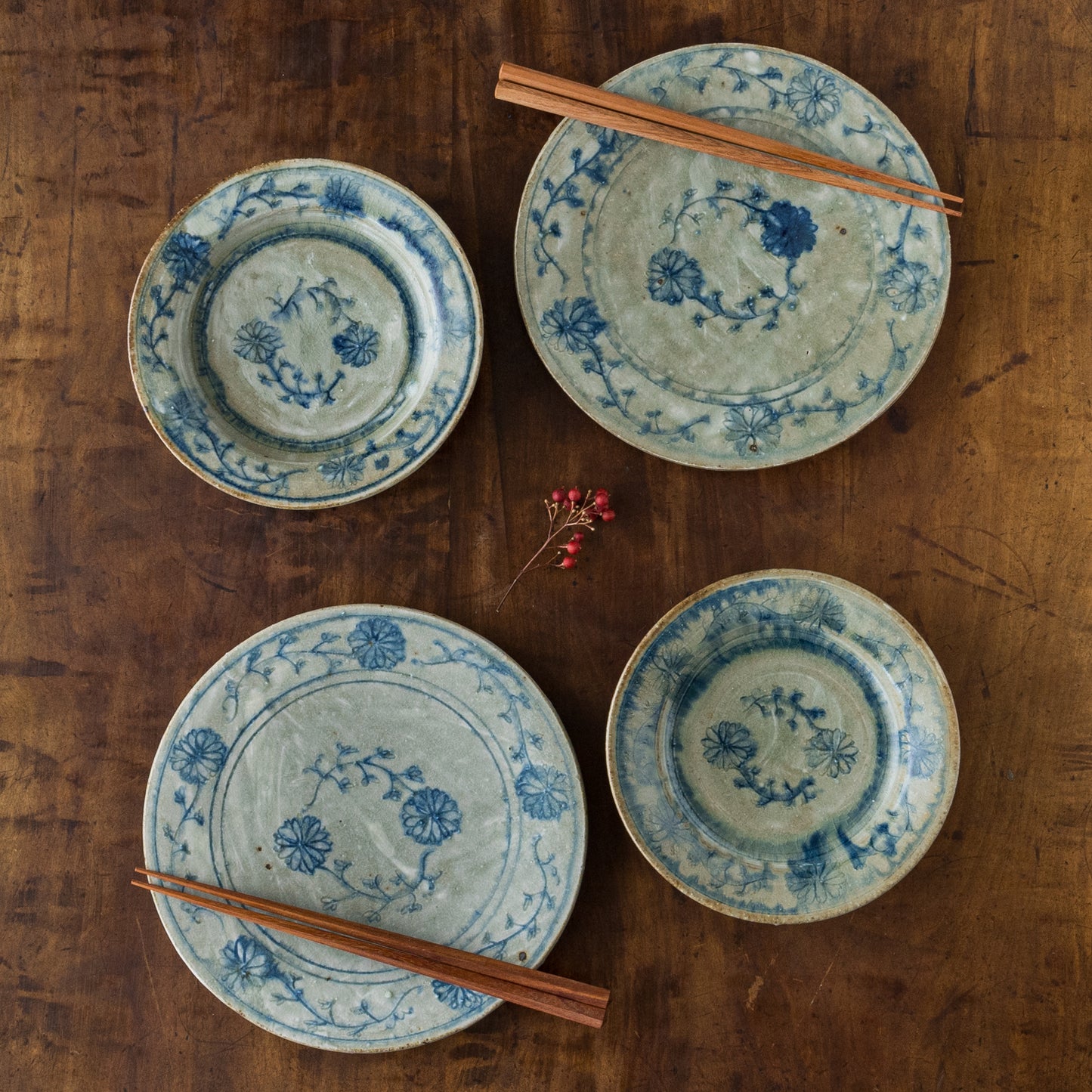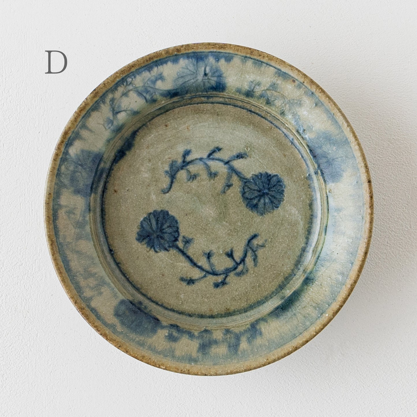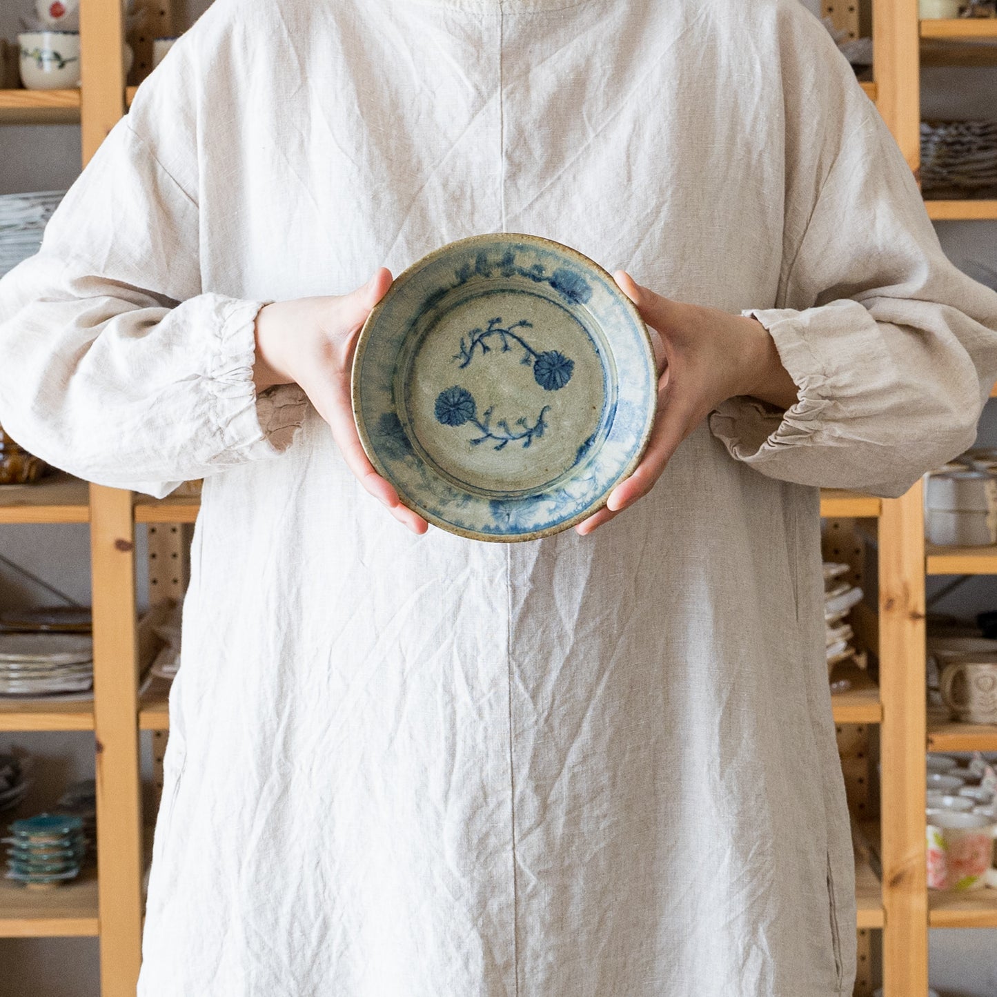 ゆるりと滲んだ呉須の絵柄がなんとも味わい深く、じっと眺めているとどこか懐かしい気持ちに。落ち着いた風合いがどんな料理もやさしく受け止めてくれます。