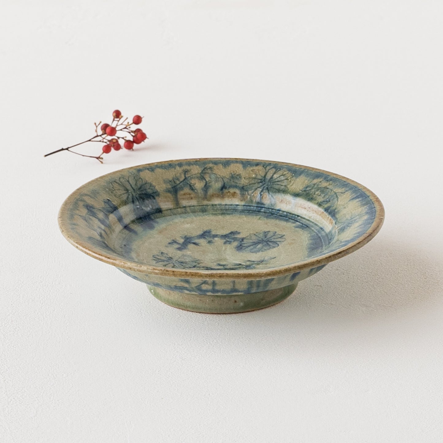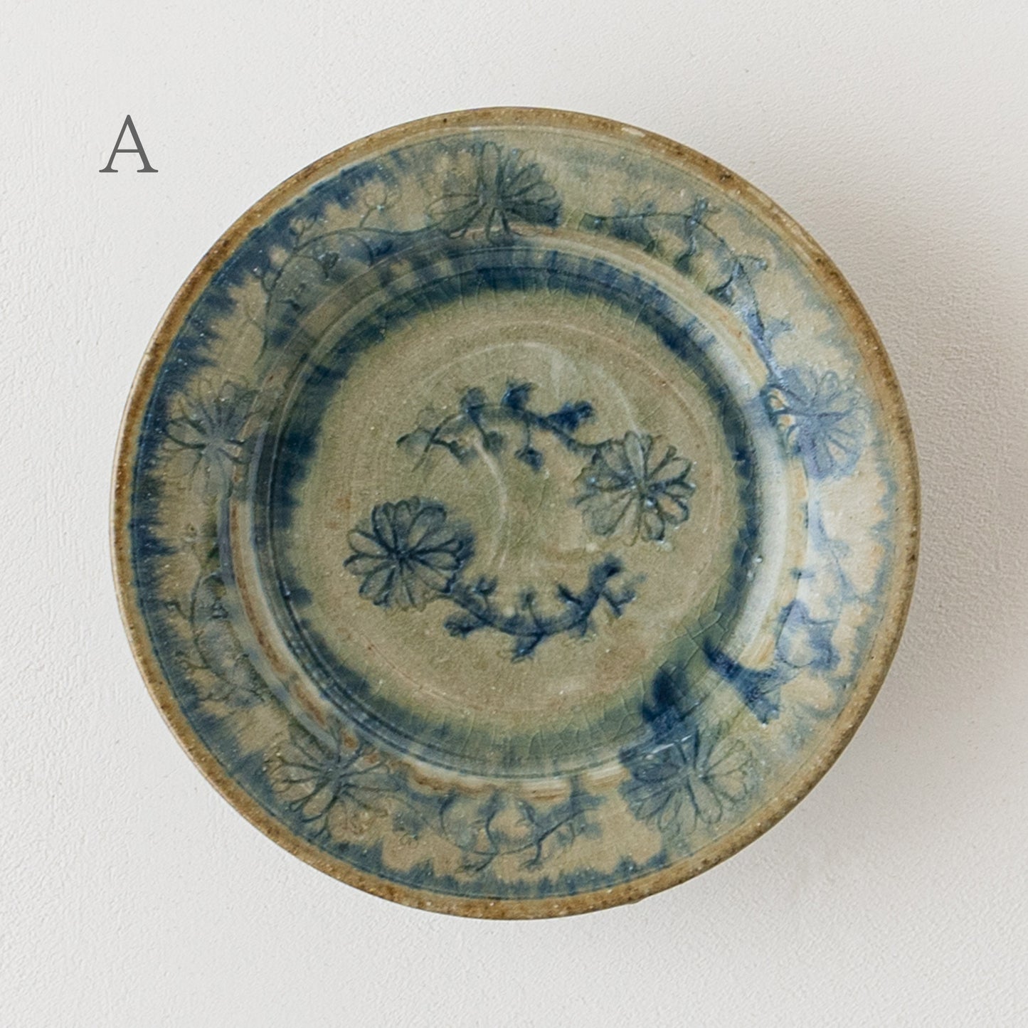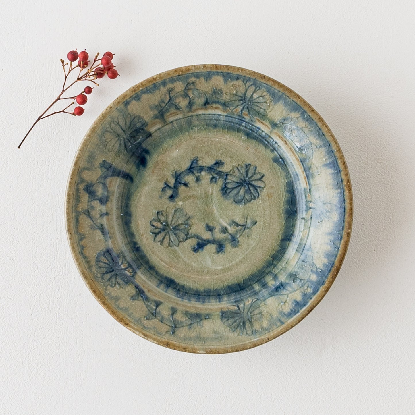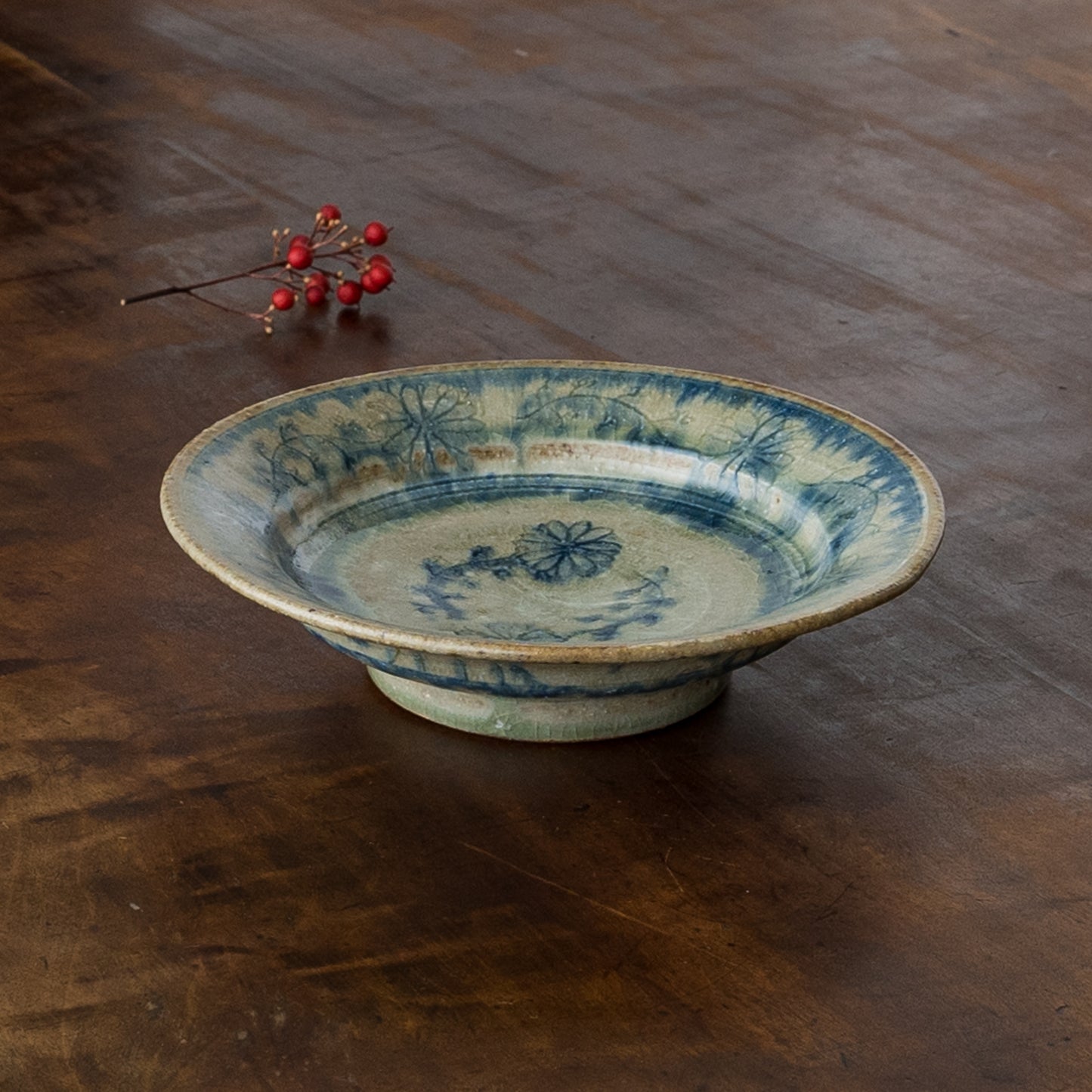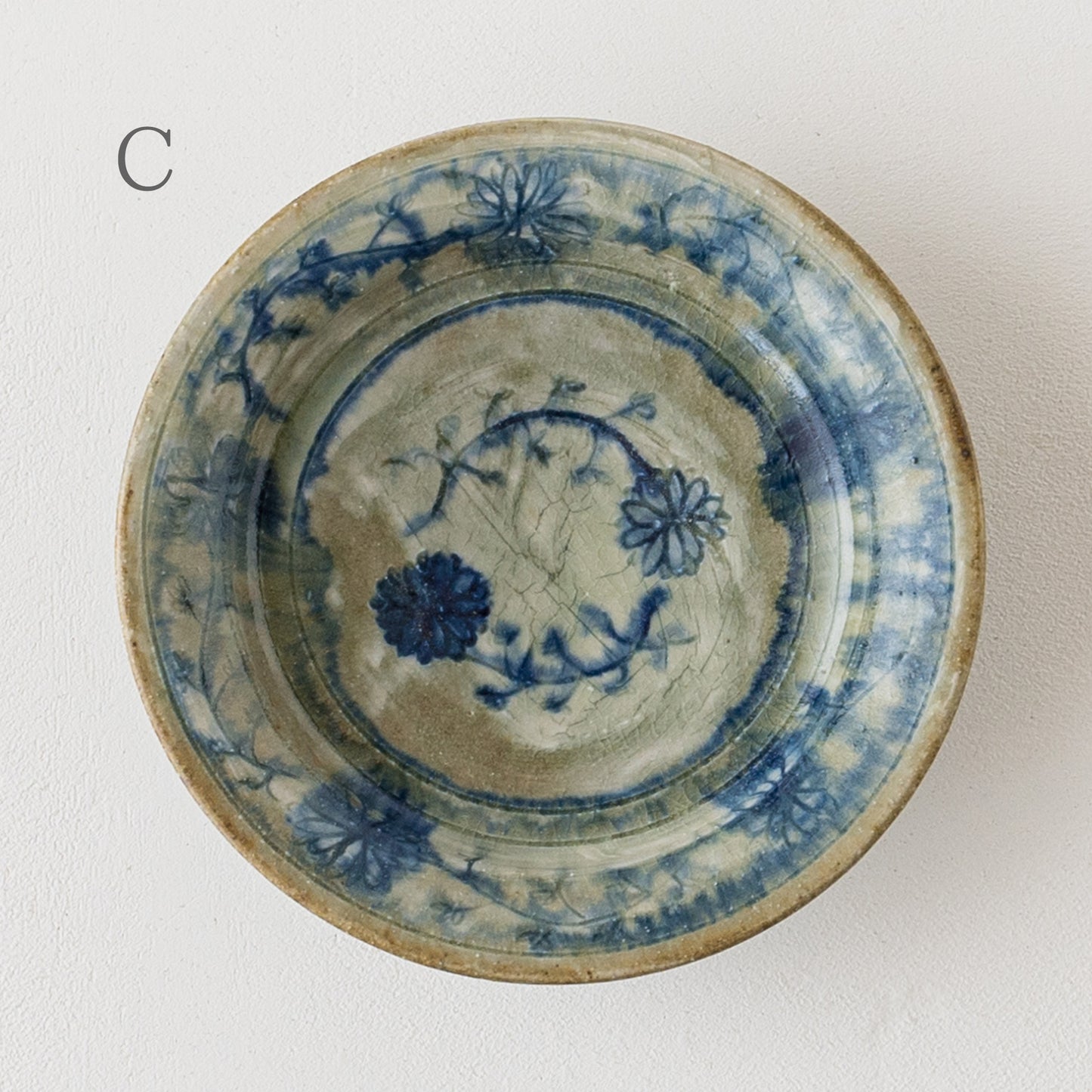 ゆるりと滲んだ呉須の絵柄がなんとも味わい深く、じっと眺めているとどこか懐かしい気持ちに。落ち着いた風合いがどんな料理もやさしく受け止めてくれます。
