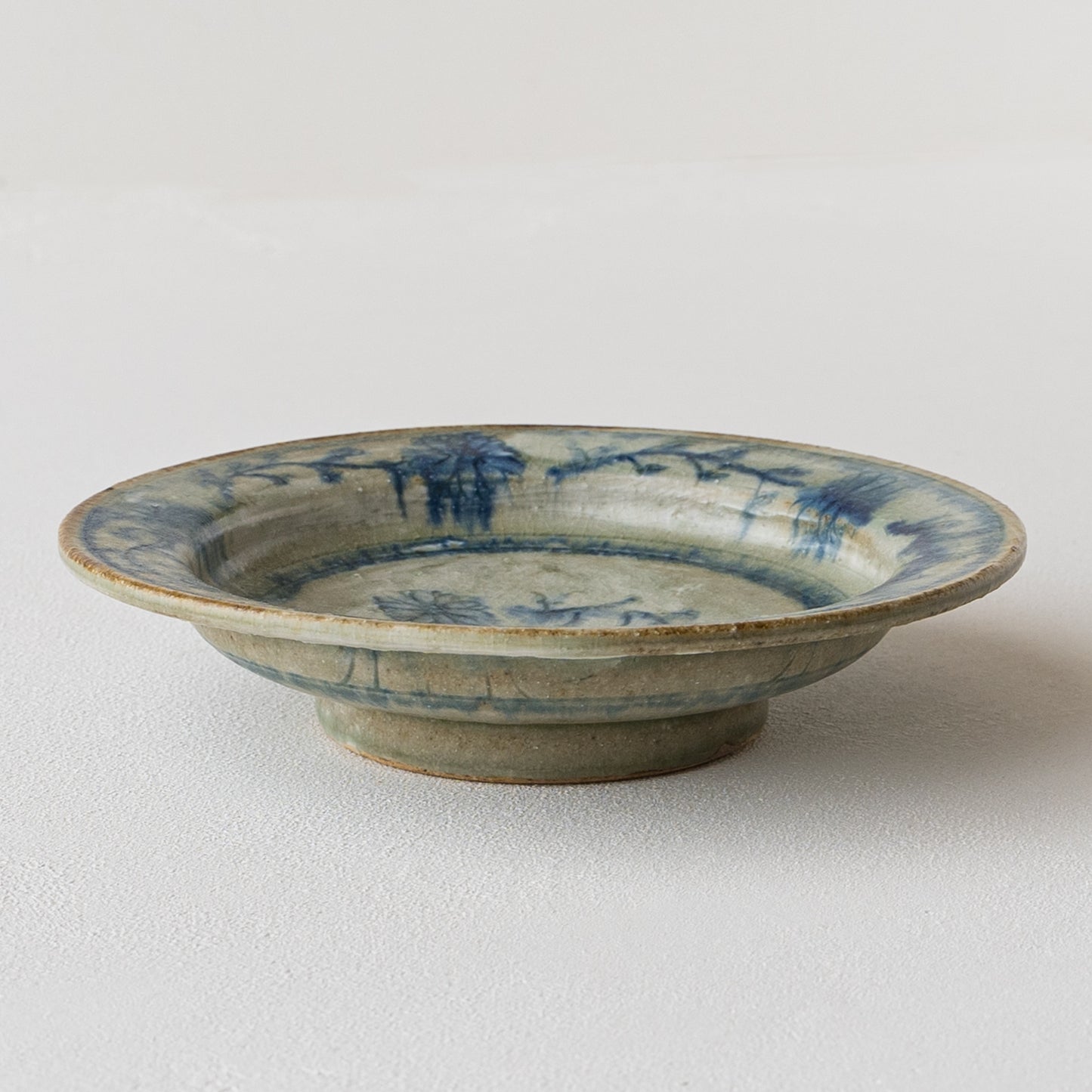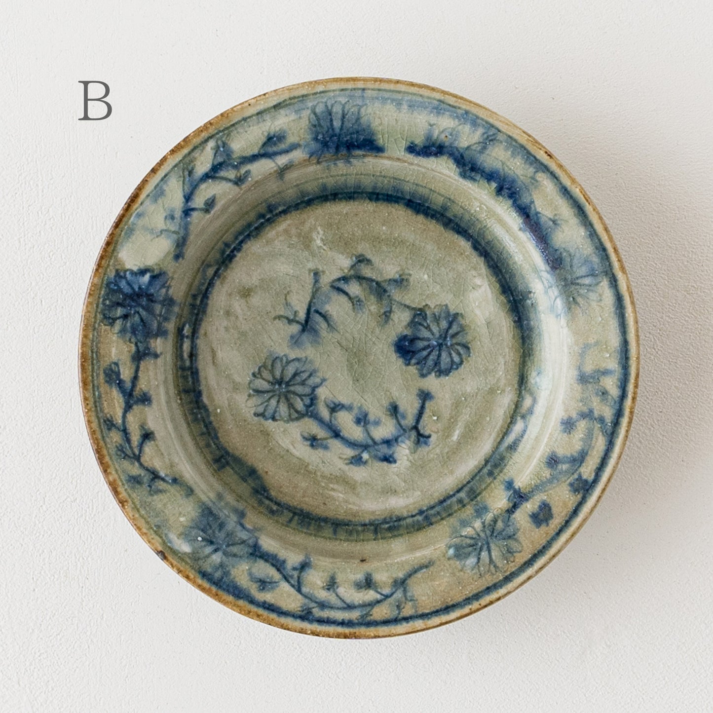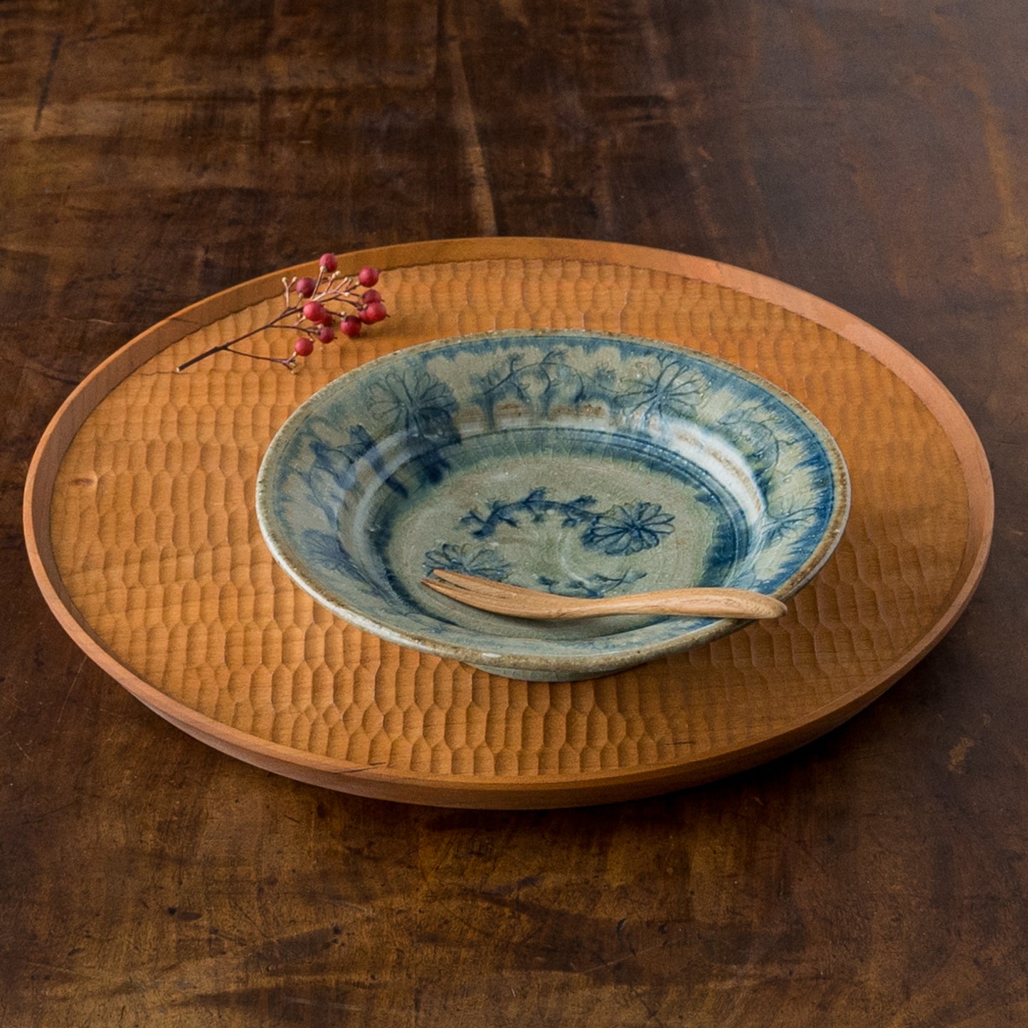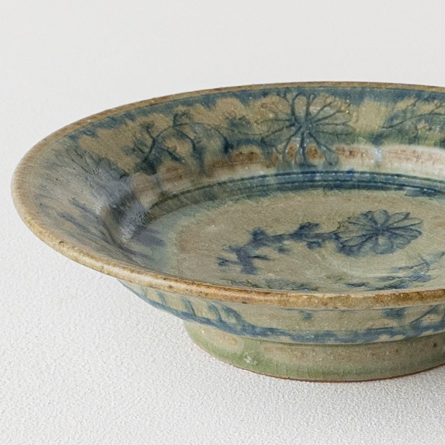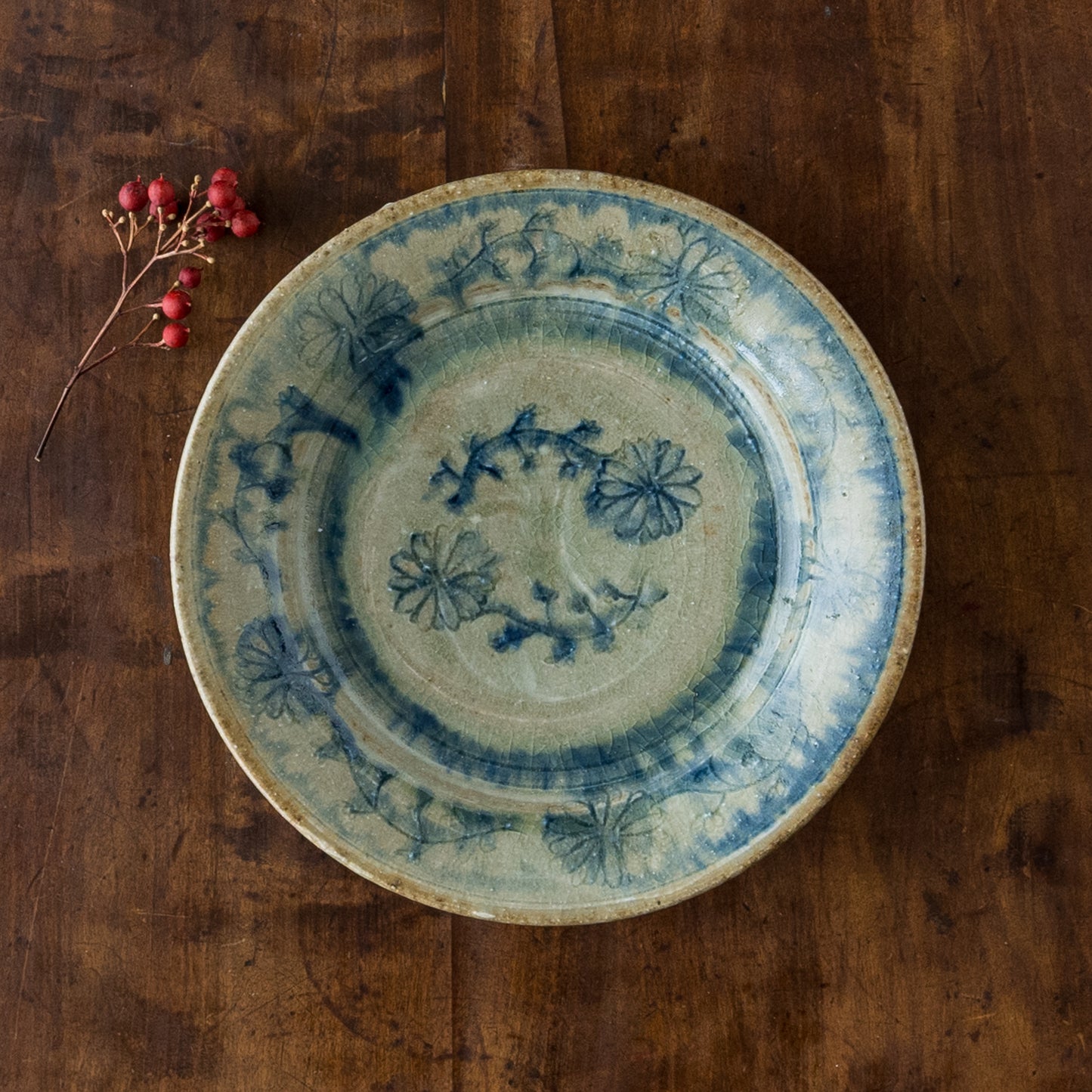 ゆるりと滲んだ呉須の絵柄がなんとも味わい深く、じっと眺めているとどこか懐かしい気持ちに。落ち着いた風合いがどんな料理もやさしく受け止めてくれます。