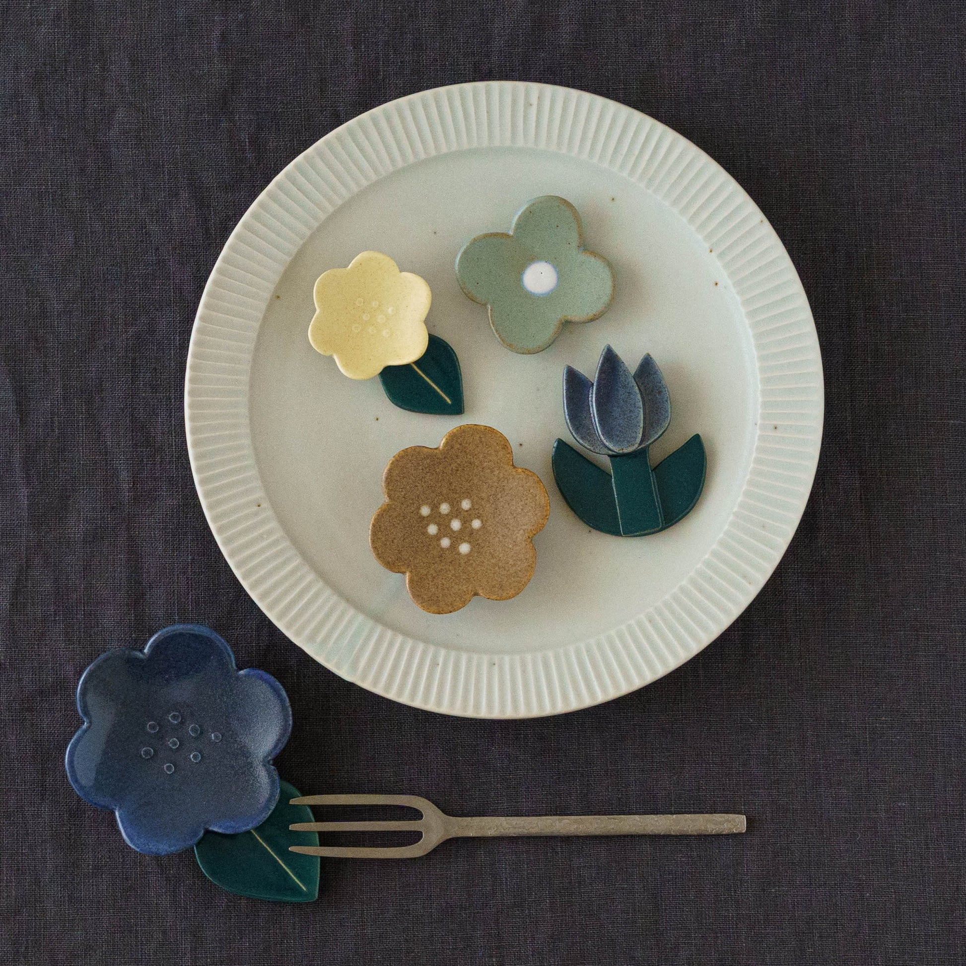 小皿も箸置きも、ただ“置く、のせる道具”にとどまらず、名脇役のように食卓に彩りを添えてくれます。そこにあるだけで、気分がきゅんとするようなかわいらしい存在感。小皿としてだけなく、大切なアクセサリーなどをそっと置いたりなど、ふっと気持ちが明るくなる“ちいさな相棒”として色々と楽しんでいただけます。