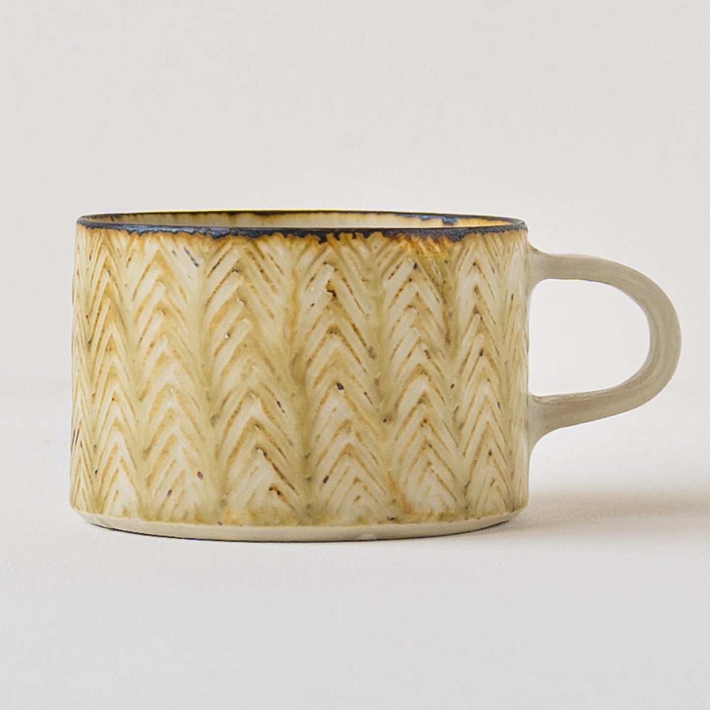 | サイズ | 口径 : 約9.2-9.69cm(持ち手含む 約12.3-12.5cm) 高さ : 約6.3-6.5cm 重さ : 約262-275g 容量 : 約200ml(8分目) |
