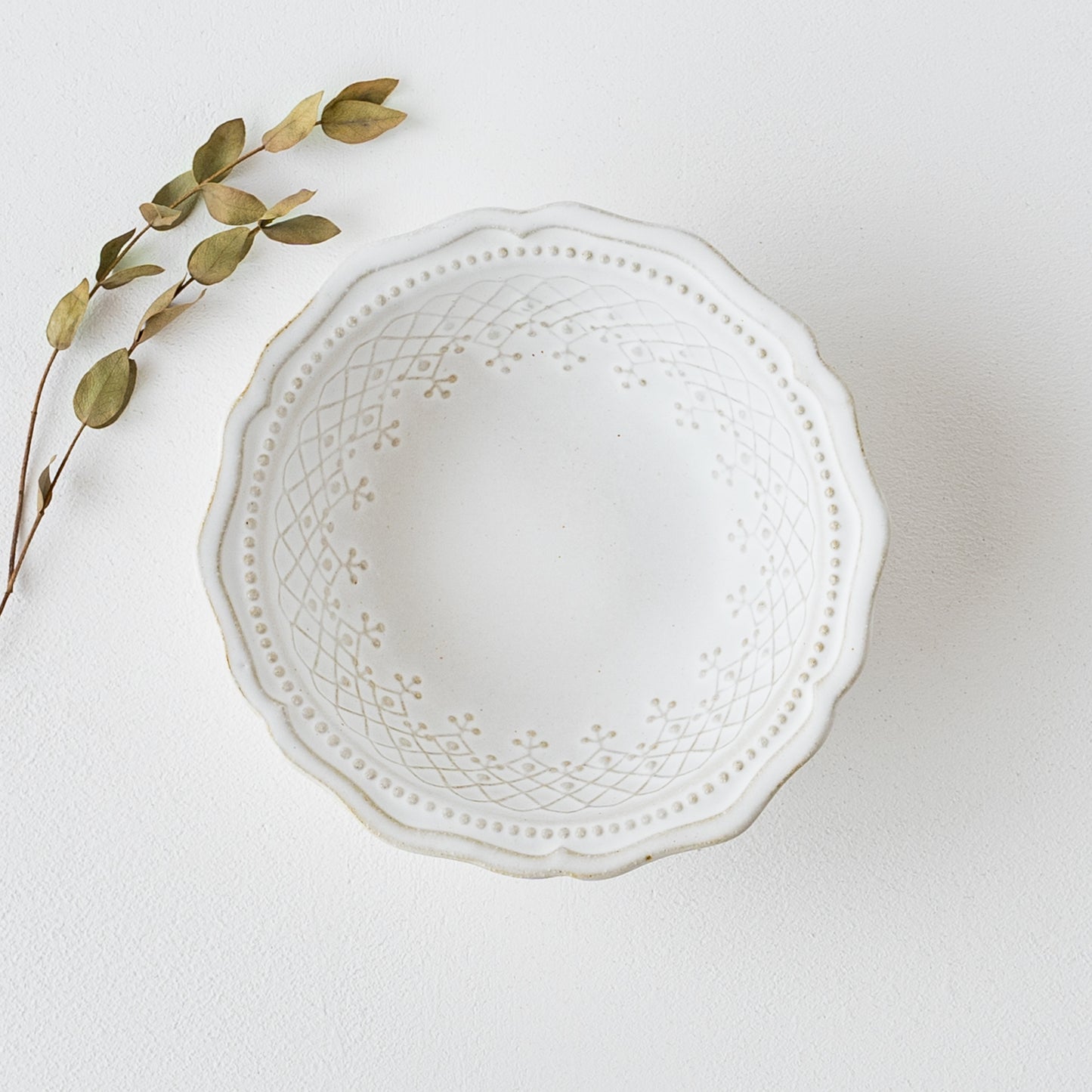 フレンチレース フリル鉢 S マットホワイト|わかさま陶芸 Wakasama-Pottery Studio French Lace frill bowl mat white