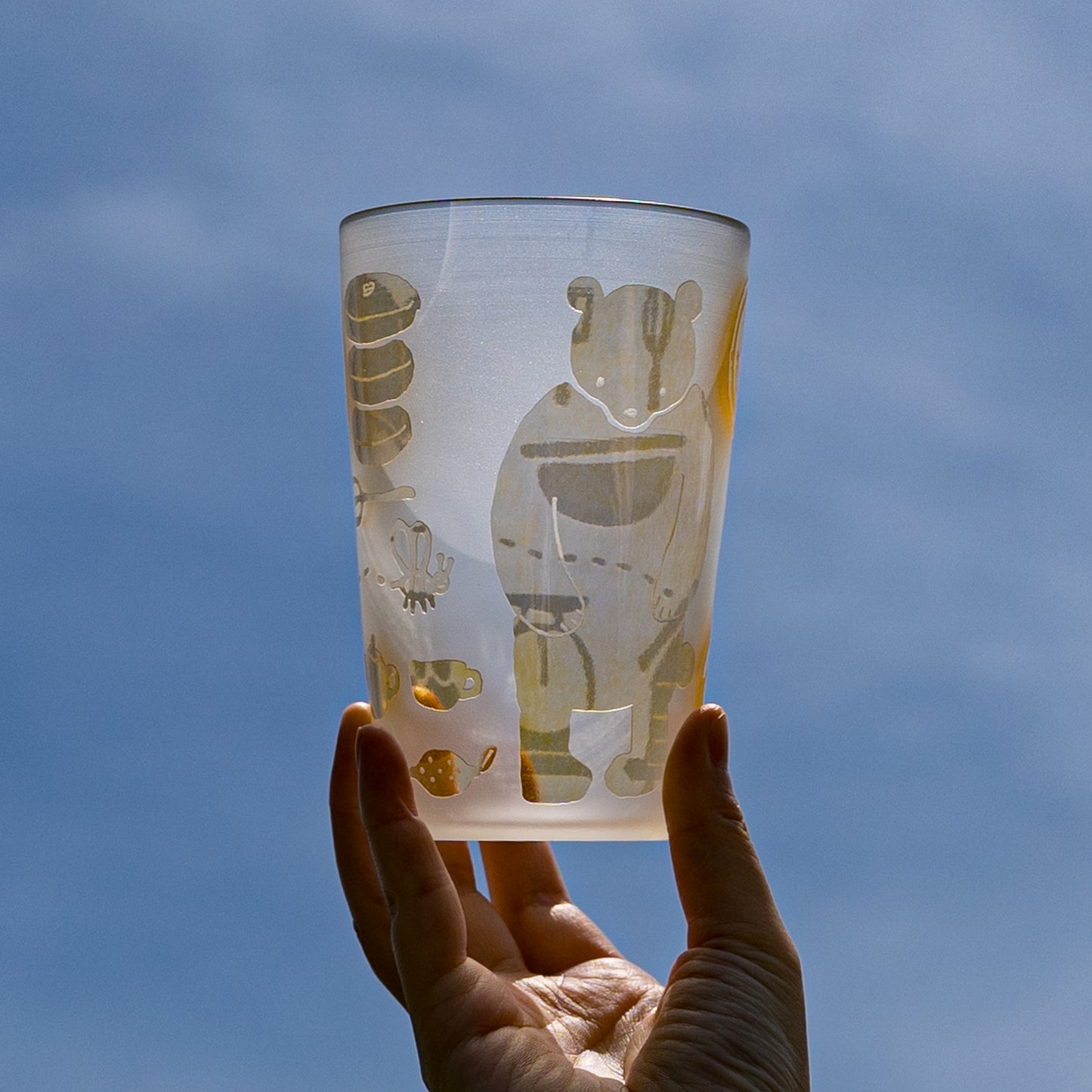 クマとおやつの道具の絵柄が可愛いワタナベサラさんのおやつのグラス