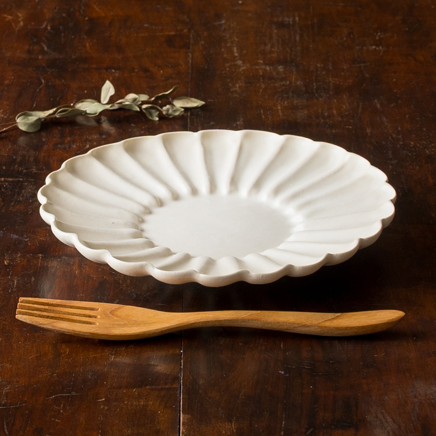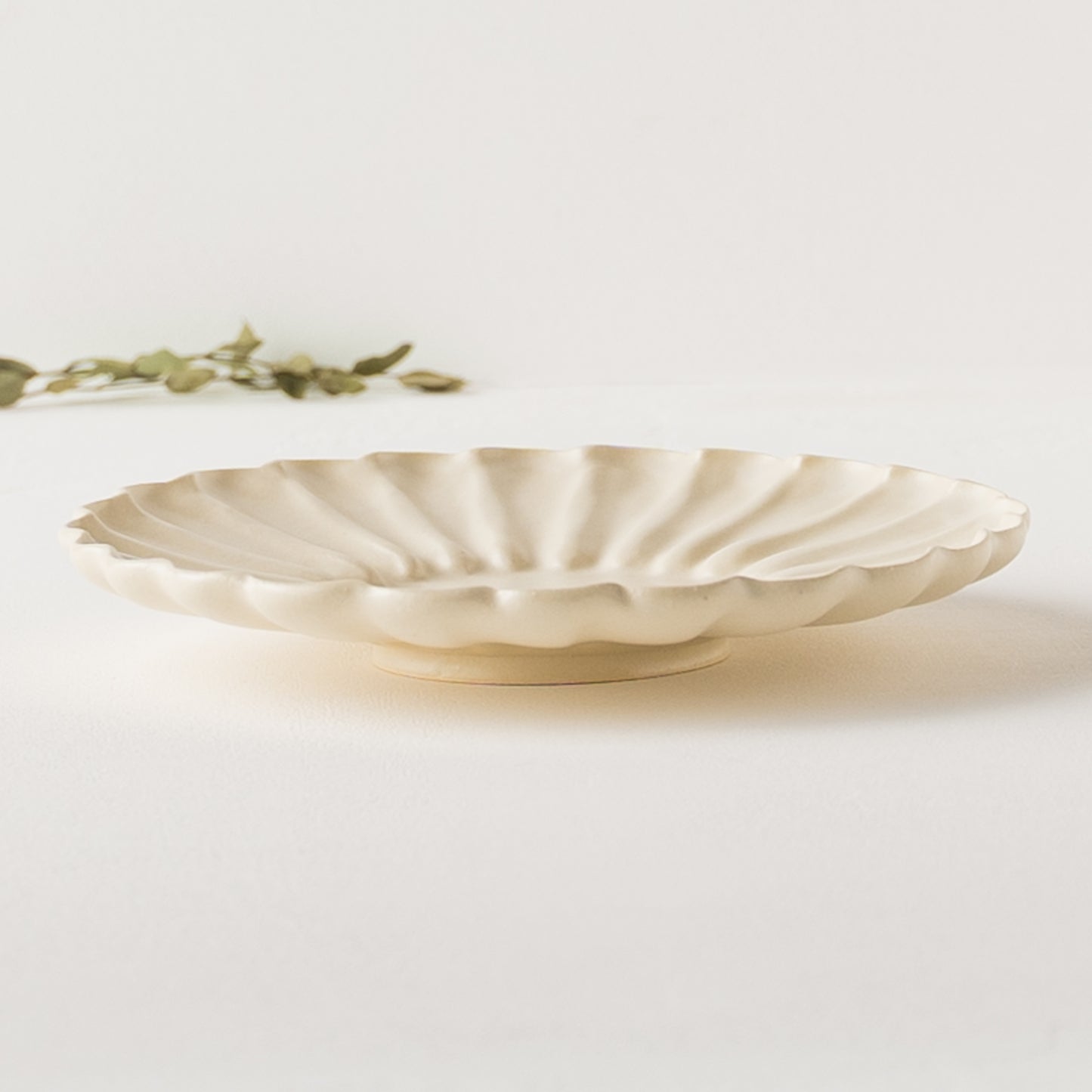 花びらを表現するラインはやわらかな風合いにとどめ、お料理を引き立てるように仕上げています。置いているだけで優雅で上品な雰囲気に。他の食器と組み合わせると食卓が華やかになり特別感が増します。