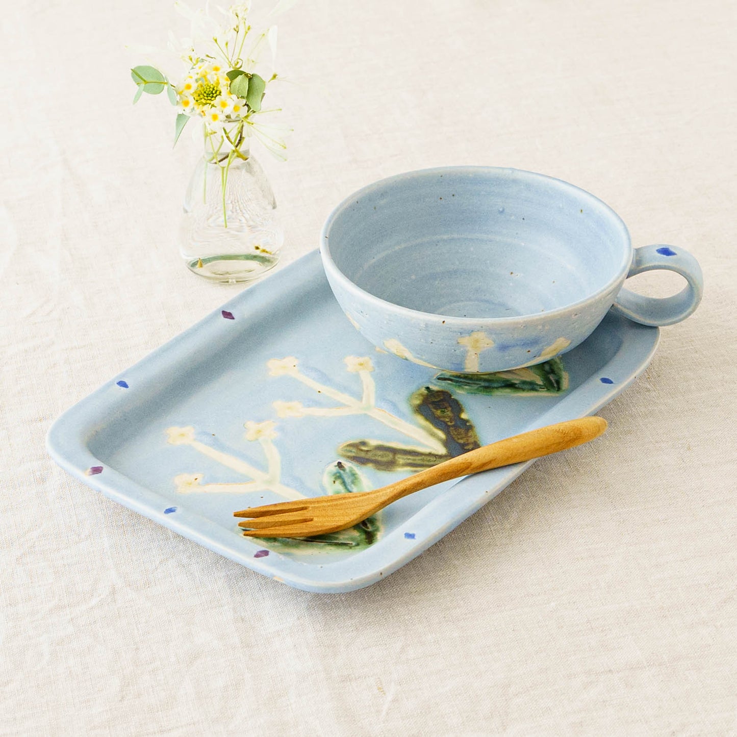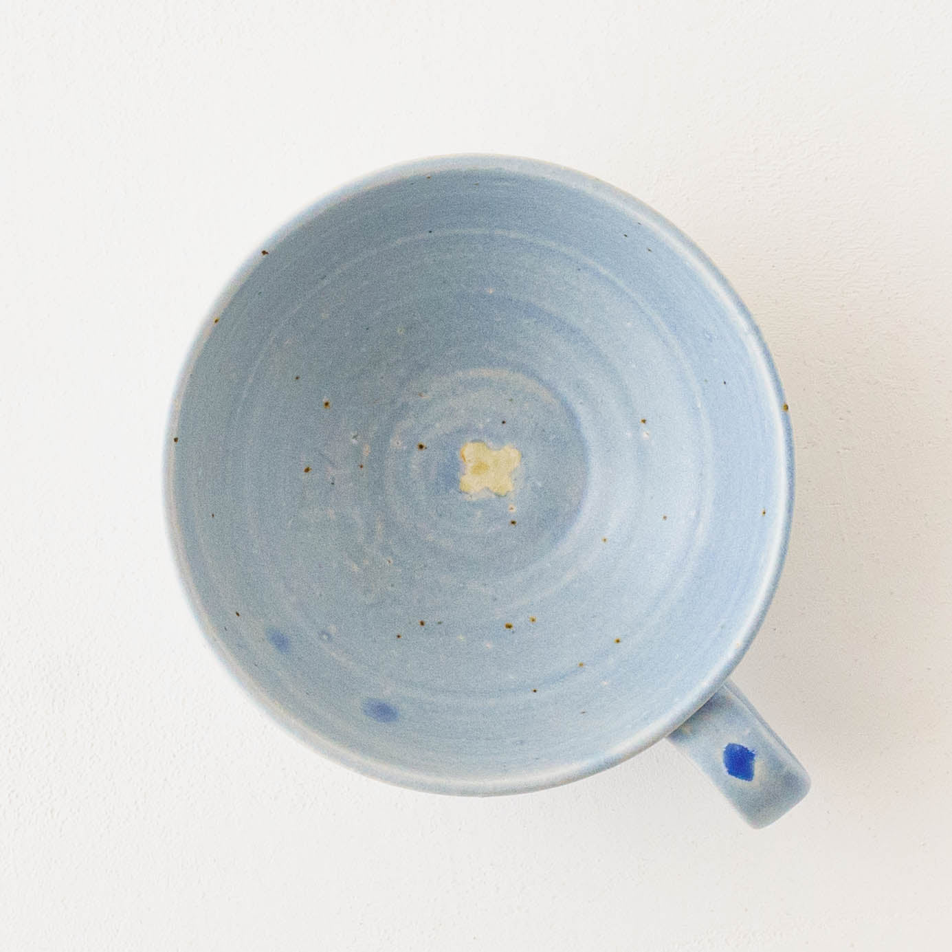 あたたかみが伝わってくるさわやかな空のようなやわらかな水色。やさしい色合いとマットな質感がお花の雰囲気をより素敵に引き立てています。